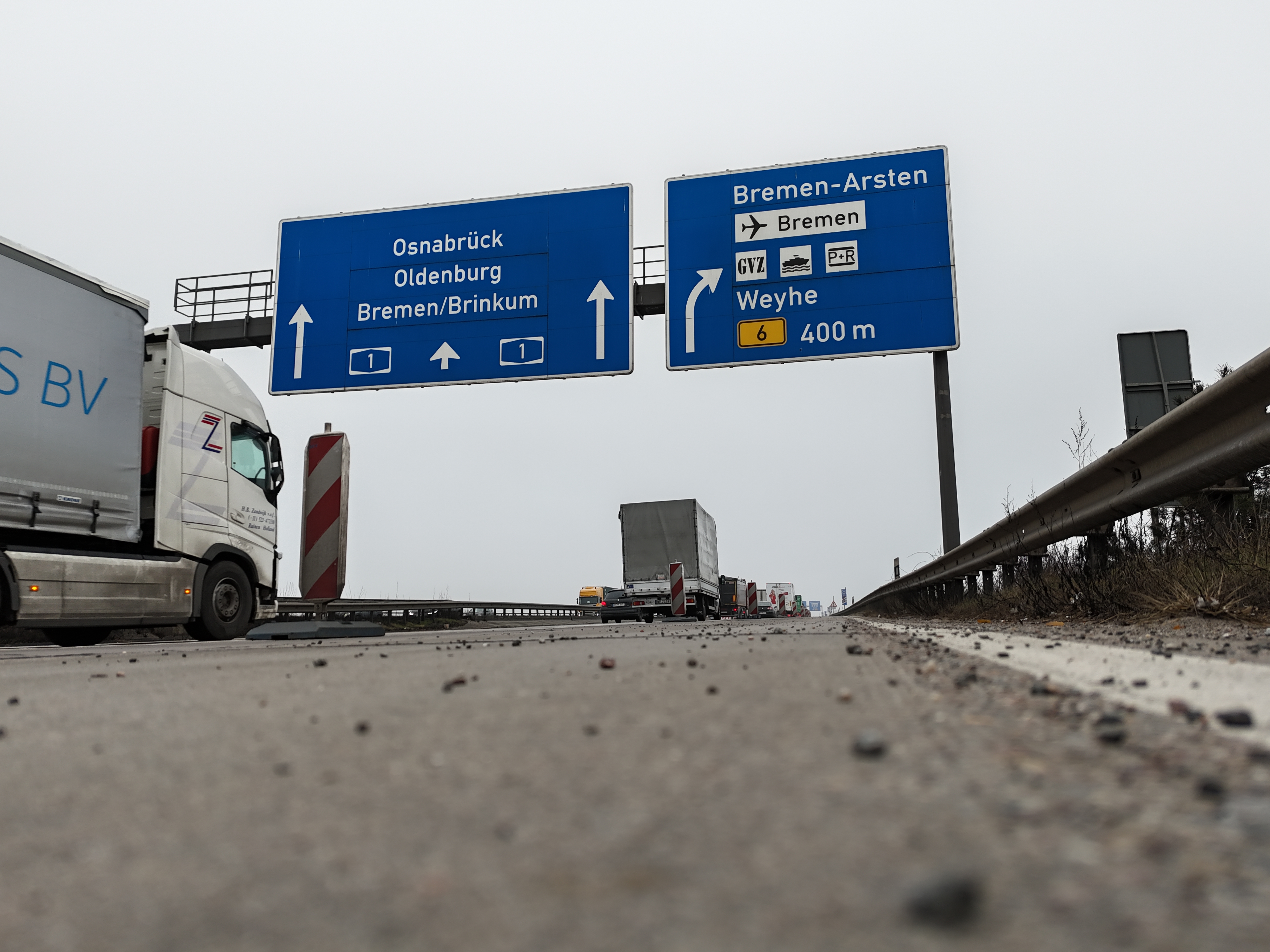 Auf der Weserbrücke im Zuge der A1 ist seit Sommer 2025 ein Überbrückungssystem zur Entlastung der schadhaften Übergangskonstruktion installiert. Dieses System wird regelmäßig überprüft. Die nächste Untersuchung erfolgt am Samstag und Sonntag, 14. und 15. März 2026. Dazu muss die A1 im Bereich der Brücke nacheinander in beiden Fahrtrichtungen kurzzeitig voll gesperrt werden: